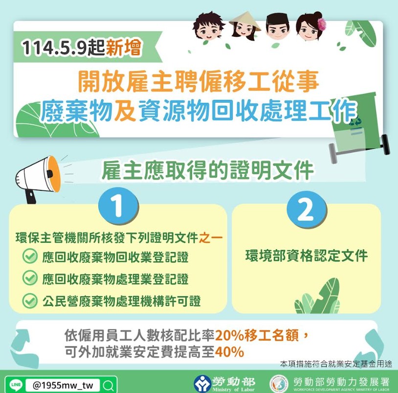 ★廢棄物及回收業開放移工申請,無工廠登記證也可申請★